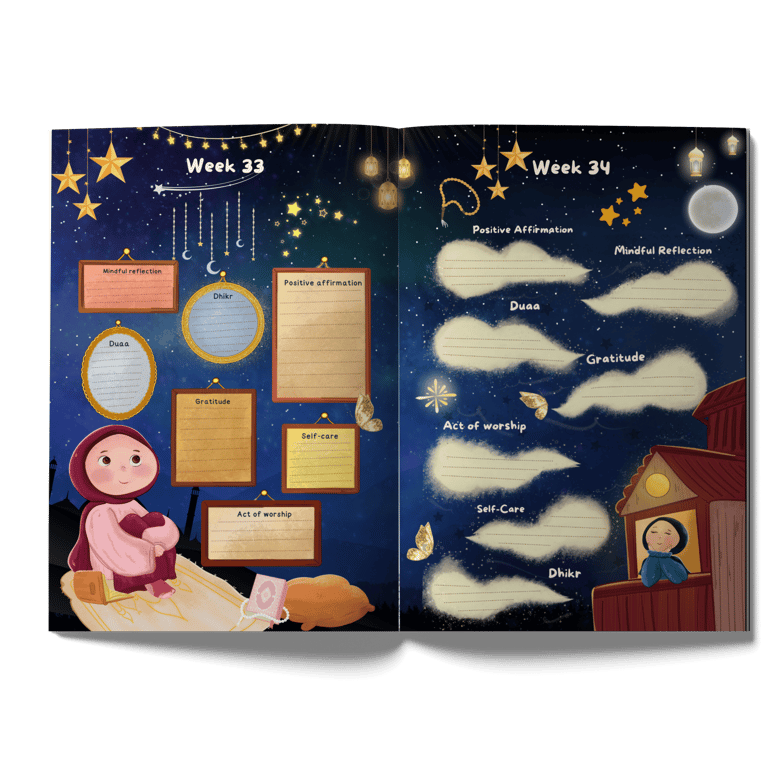 Join a spiritual journey with our children's Ramadan journal, featuring gratitude prompts, daily duas, Salat tracker, acts of kindness, Islamic reflections, and daily Dhikr. A reliable companion for young hearts looking to strengthen their faith connection during Ramadan.