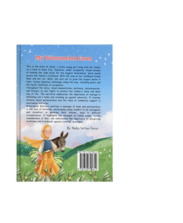 I wrote The Watermelon Farm from a place deep in my heart, inspired by the strength of a young girl named Alyah. Living on a farm in Gaza City, she faces daily challenges under occupation, yet her dream of growing the biggest watermelon shines like a beacon of hope. Through Alyah’s eyes, I wanted to show that even in the toughest circumstances, courage and determination can help us nurture our dreams.