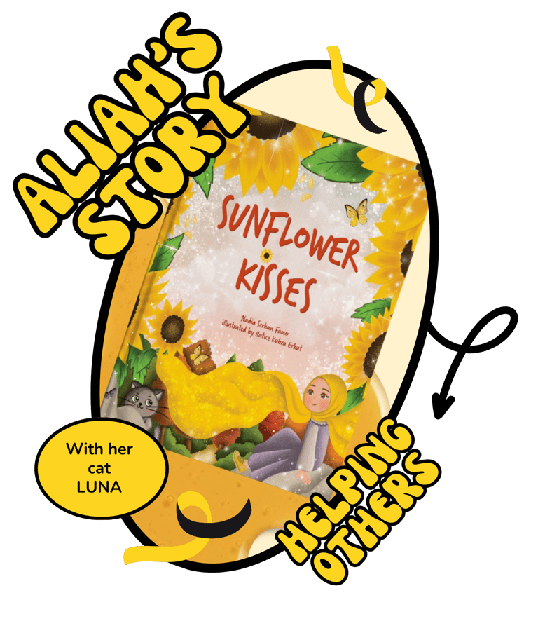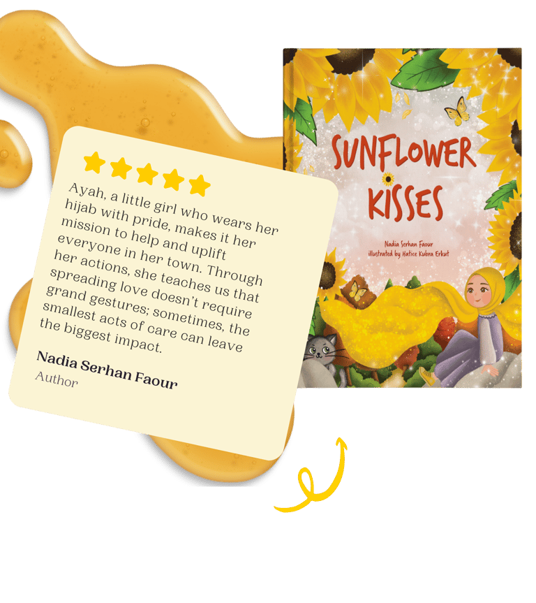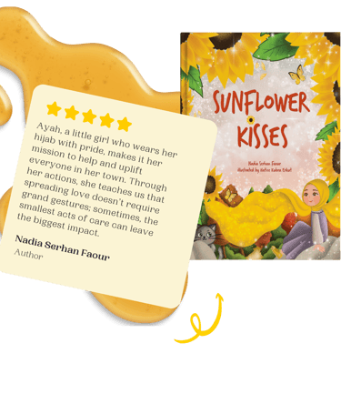 I believe kindness is one of the most beautiful gifts we can give, and Sunflower Kisses is a story that reflects just that. Ayah, a little girl who wears her hijab with pride, makes it her mission to help and uplift everyone in her town. Through her actions, she teaches us that spreading love doesn’t require grand gestures; sometimes, the smallest acts of care can leave the biggest impact.